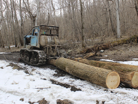 С места происшествия изъята специальная техника, с помощью которой осуществлялась валка леса, а также часть заготовленной древесины.