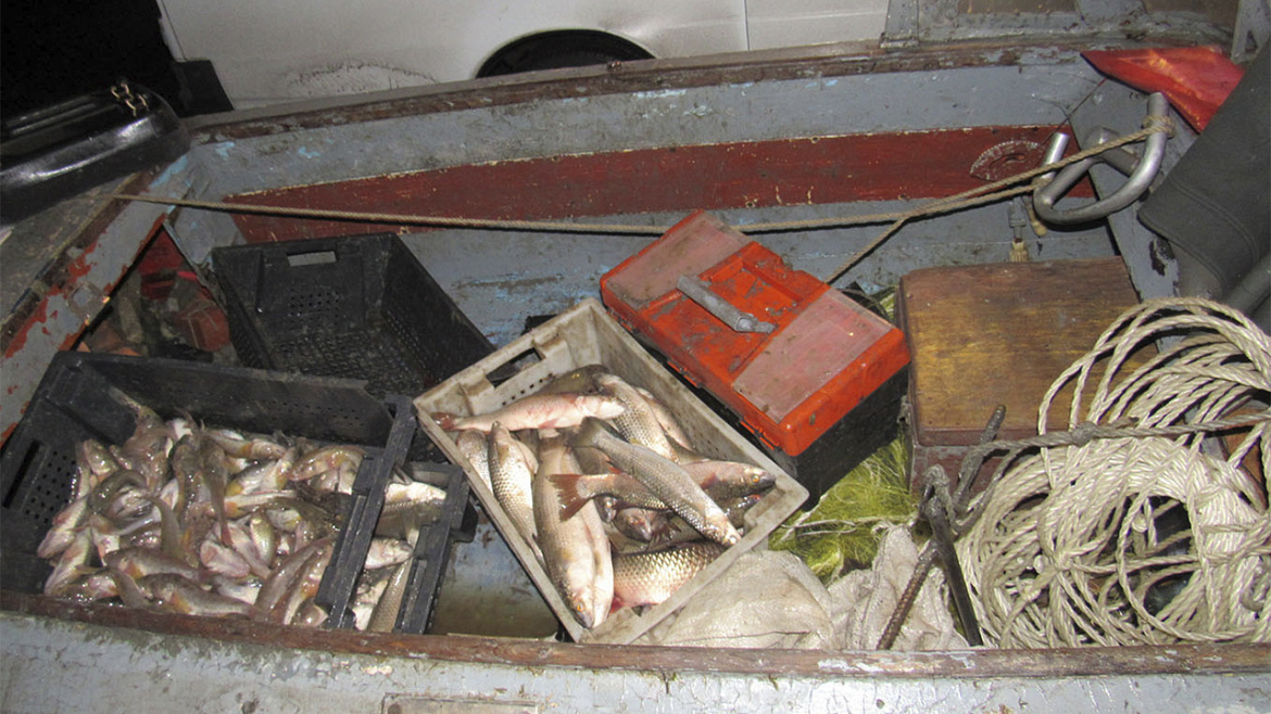 У нарушителей были обнаружены и изъяты лодка с подвесным мотором и запрещённые орудия лова – более 140 метров лесковых сетей, а также рыба разных пород в количестве около 300 штук, в том числе пеленгас, бычки, тарань.
