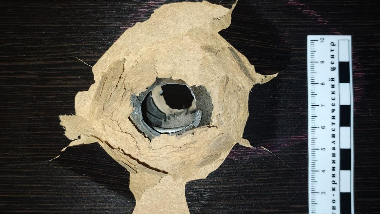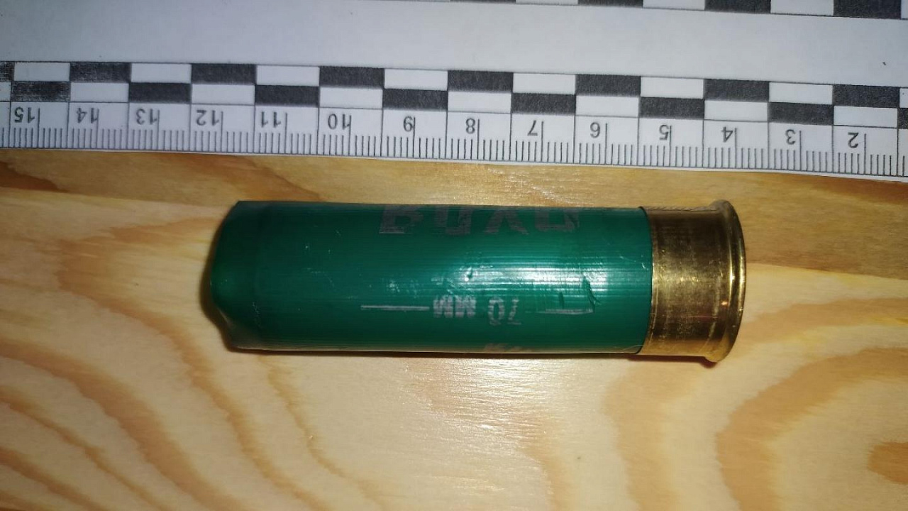 В ходе осмотра квартиры на шкафу в коридоре был обнаружен охотничий карабин 12 калибра, который был изъят. Также с места происшествия изъяты 29 патронов калибра 9 мм РА (травматические), 2 патрона калибра 12 мм с дробью 8,5 мм и стреляная гильза 12 калибра.