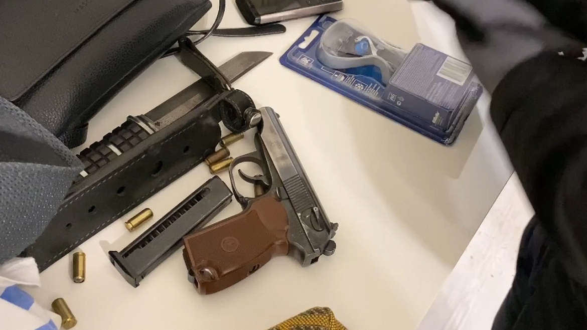 При проведении оперативно-розыскных мероприятий полицейские задержали подозреваемых, троих мужчин в возрасте от 34 до 45 лет. По месту их проживания обнаружен травматический пистолет, патроны, четыре ножа и кастет.
