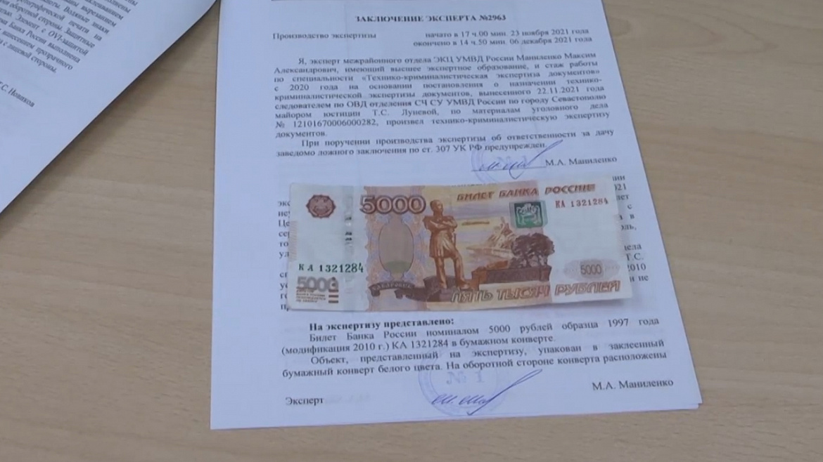 Во время следственных действий в помещении одного из торговых объектов Севастополя полицейские обнаружили и изъяли фальшивую банкноту, которую ранее подозреваемые сбыли.