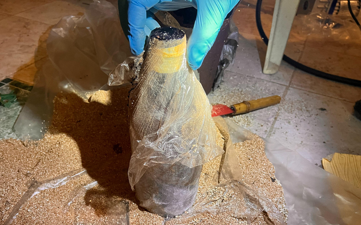 В ходе проведённого обыска сотрудники полиции изъяли оборудование нарколаборатории, а также четыре зип-пакета с готовым криминальным товаром и жидкость, которая, согласно заключению эксперта, содержит в пересчёте на сухое вещество более 250 граммов мефедрона.