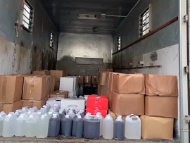 Во время обысковых мероприятий в доме злоумышленника изъято более 200 канистр и ёмкостей со спиртосодержащей жидкостью общим объёмом более двух тонн, а также свыше 800 бутылок готовой алкогольной продукции различных наименований.