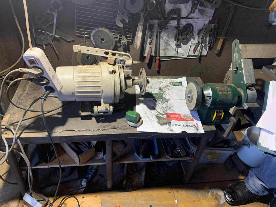 При осмотре гаража, расположенного в Артемовском, полицейские изъяли оборудование, заготовки для изготовления и готовые ножи, 9 из которых, по результатам проведенного исследования, были также признаны холодным оружием колюще-режущего действия.
