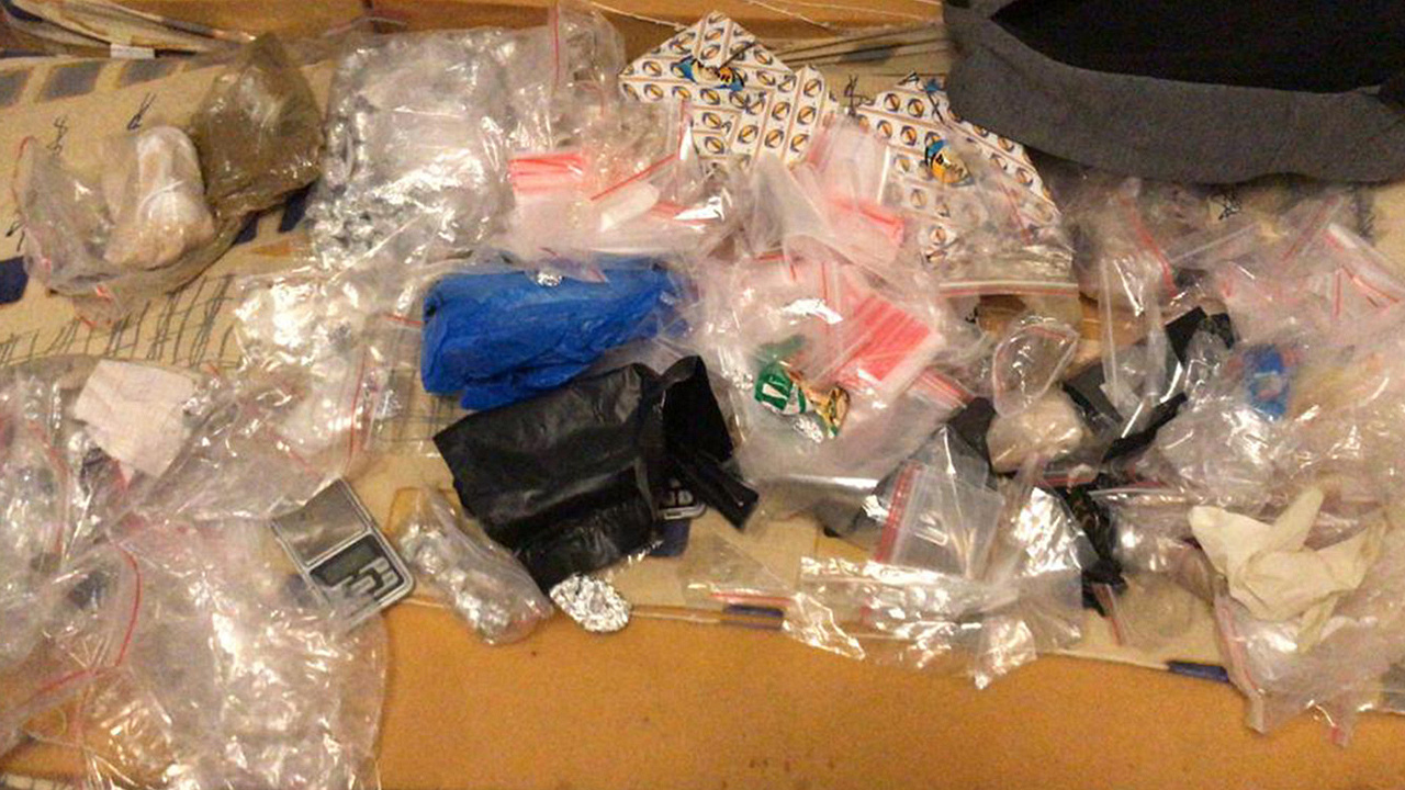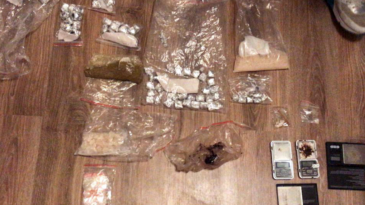 При обыске по месту жительства одного из подозреваемых правоохранители с применением служебно-розыскной собаки изъяли более 150 расфасованных свёртков из фольги и полимерных пакетов, в которых находились кристаллообразные вещества разных цветов. Также полицейские обнаружили весы, резиновые перчатки, пустые полимерные пакеты разных размеров и кассовые чеки.