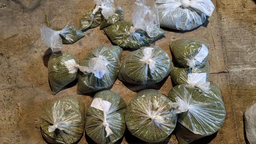 При отработке оперативной информации стражи правопорядка провели обыск в частном доме подозреваемого. В жилище найдена масса зелёного цвета. Примерный вес обнаруженных у подозреваемого растений составил около 9 килограммов.