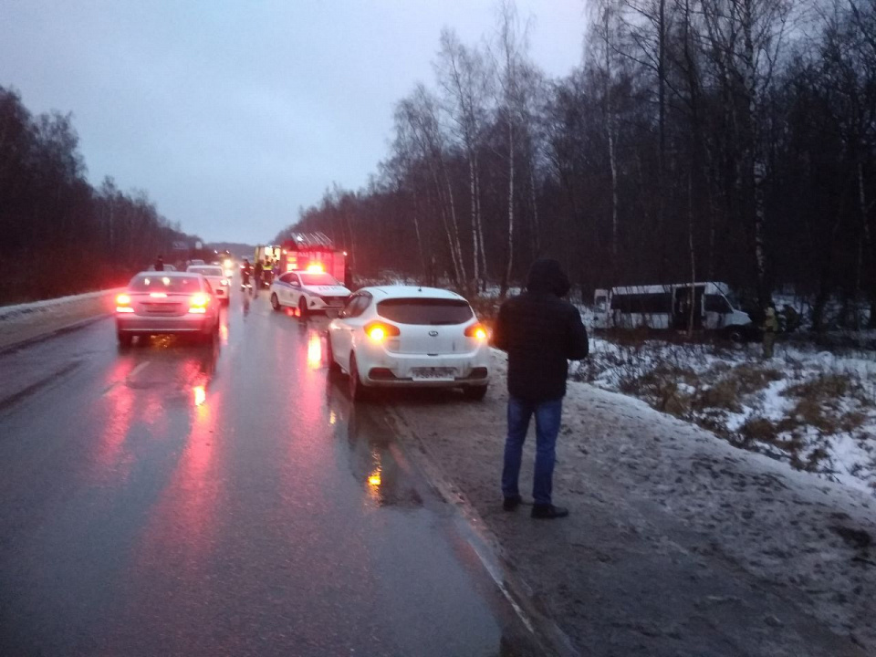 По предварительным данным, 27-летний водитель микроавтобуса выехал на встречную полосу, где совершил касательное столкновение с грузовиком, после чего машина съехала в кювет.