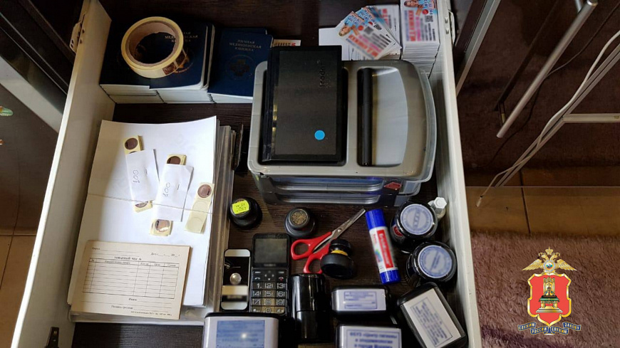 В результате оперативно-розыскных мероприятий и следственных действий по местам жительства фигурантов изъяты бланки, печати и голограммы несуществующих медицинских организаций.