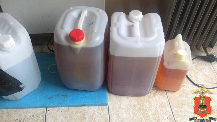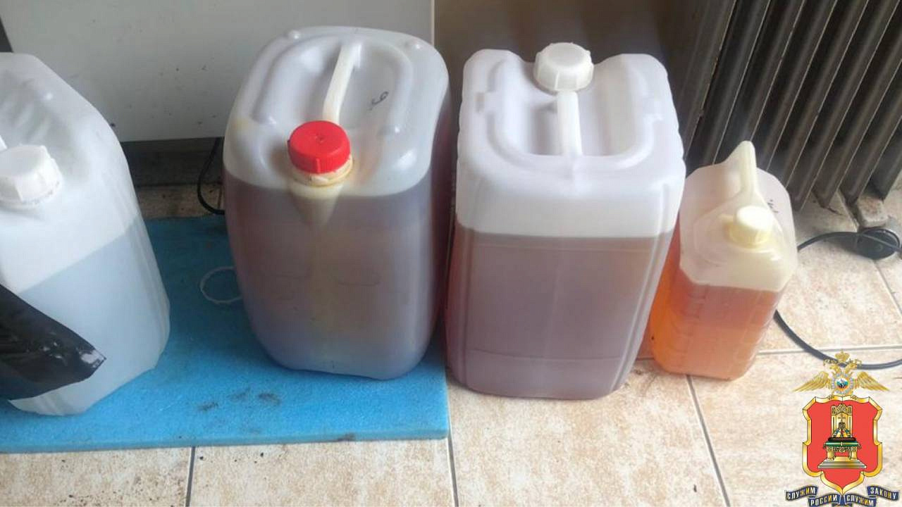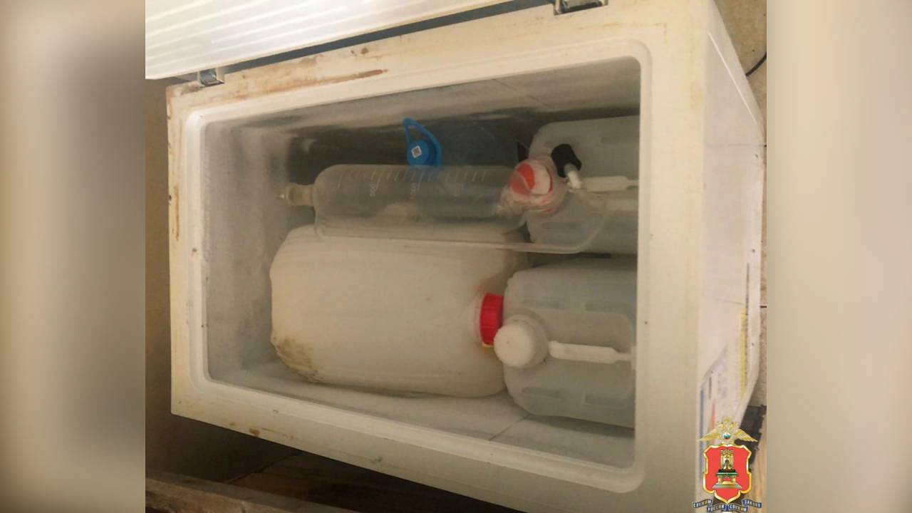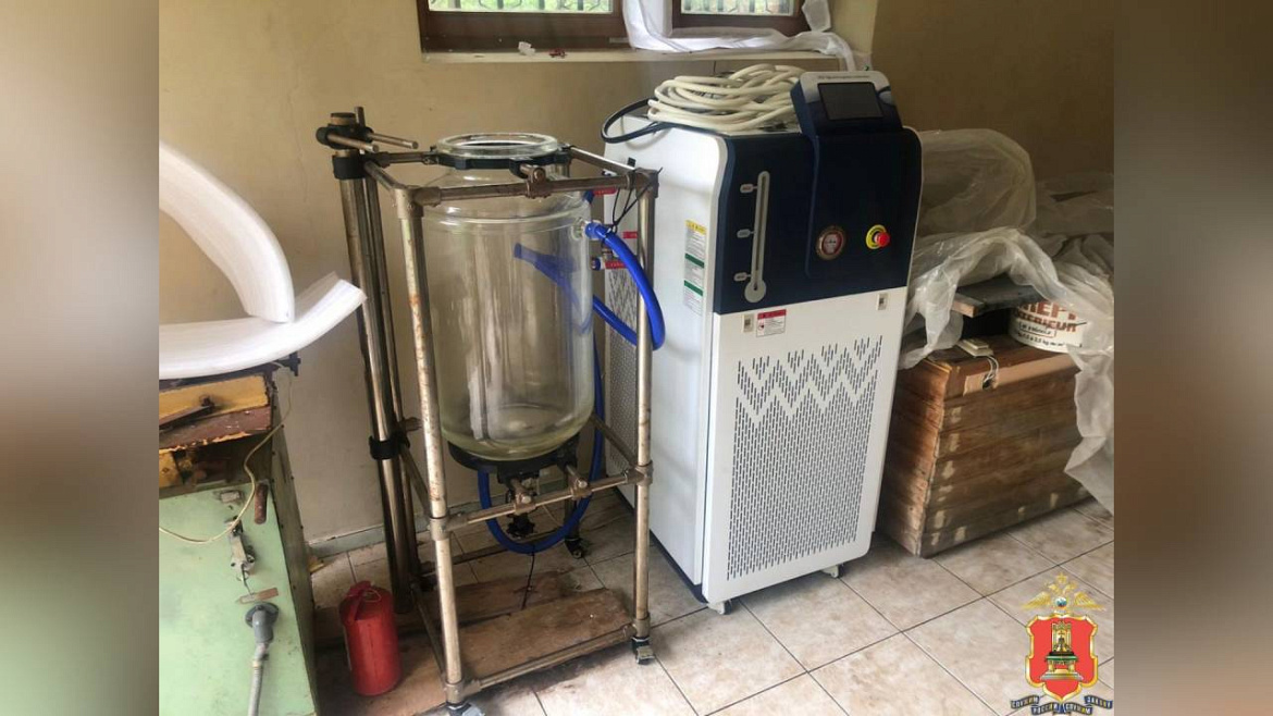 В ходе обследования дома, гаража и придомовой территории дачного участка полицейские обнаружили два химических реактора, увлажнитель, индукционную плату, электронный термометр, мерные стаканы, делительные воронки и различные ёмкости, а также 16 канистр с жидкостями общим объёмом около 180 литров.