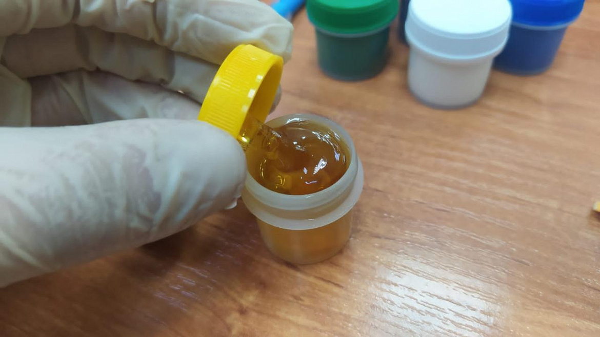В ходе осмотра инструментария оперативники обнаружили, что в одной из баночек вместо краски содержалась неизвестная вязкая жидкость, которая, как показала проведённая экспертиза, являлась гашишным маслом массой более 6 граммов.