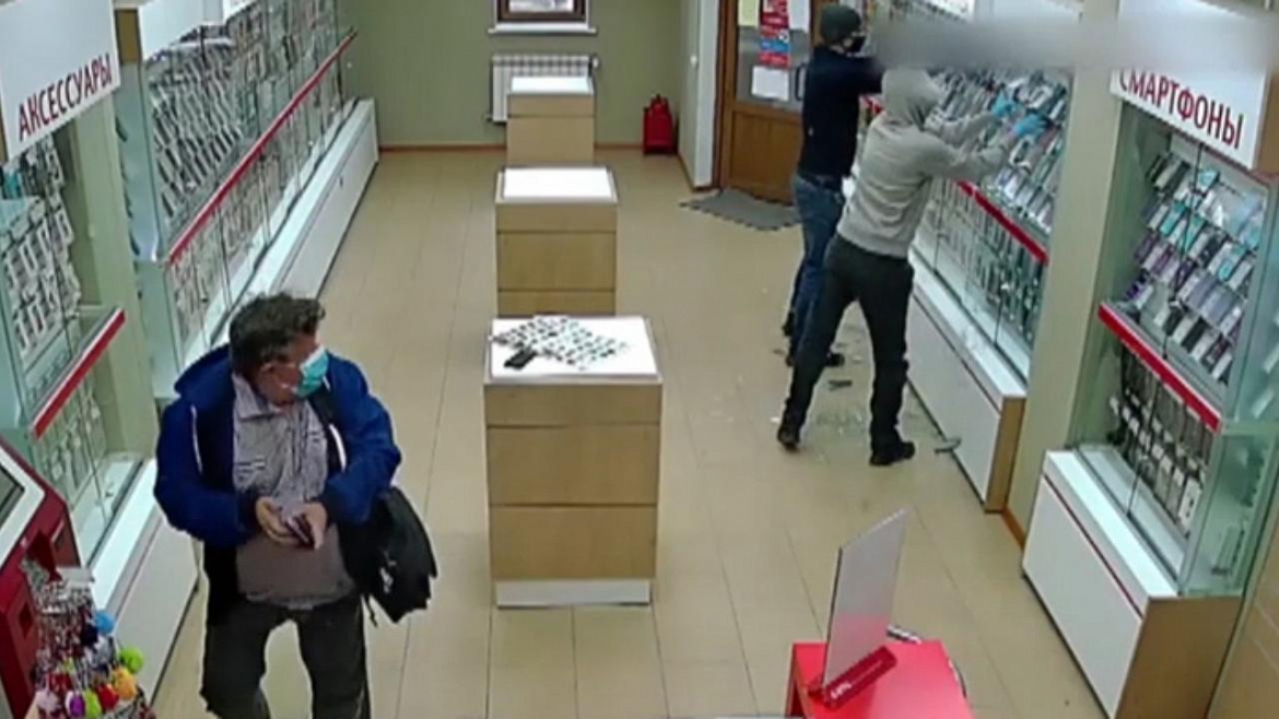 Установлено, что молодой человек в дневное время в капюшоне и маске вошел в салон сотовой связи, расположенный на ул. Коммунальная г. Белоозерский, в присутствии продавца камнем разбил витрину, схватил смартфоны, после чего выбежал из магазина и скрылся. Сумма причиненного ущерба составила около 100 тысяч рублей.