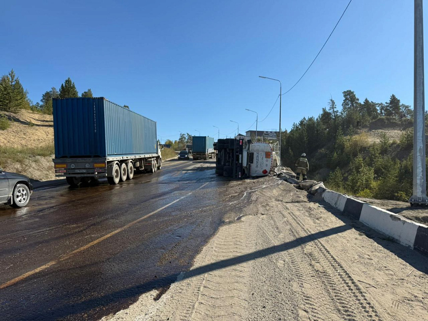 Прибывшие на место дорожно-транспортного происшествия сотрудники Госавтоинспекции выяснили, что на 21 километре федеральной автодороги «Колыма» 43-летний водитель большегруза марки Volvo, двигаясь со стороны нефтебазы в сторону села Чурапча Чурапчинского района, не справился с управлением и допустил опрокидывание транспортного средства на правый бок. В результате аварии произошёл разлив нефтепродуктов. Пострадавших нет.
