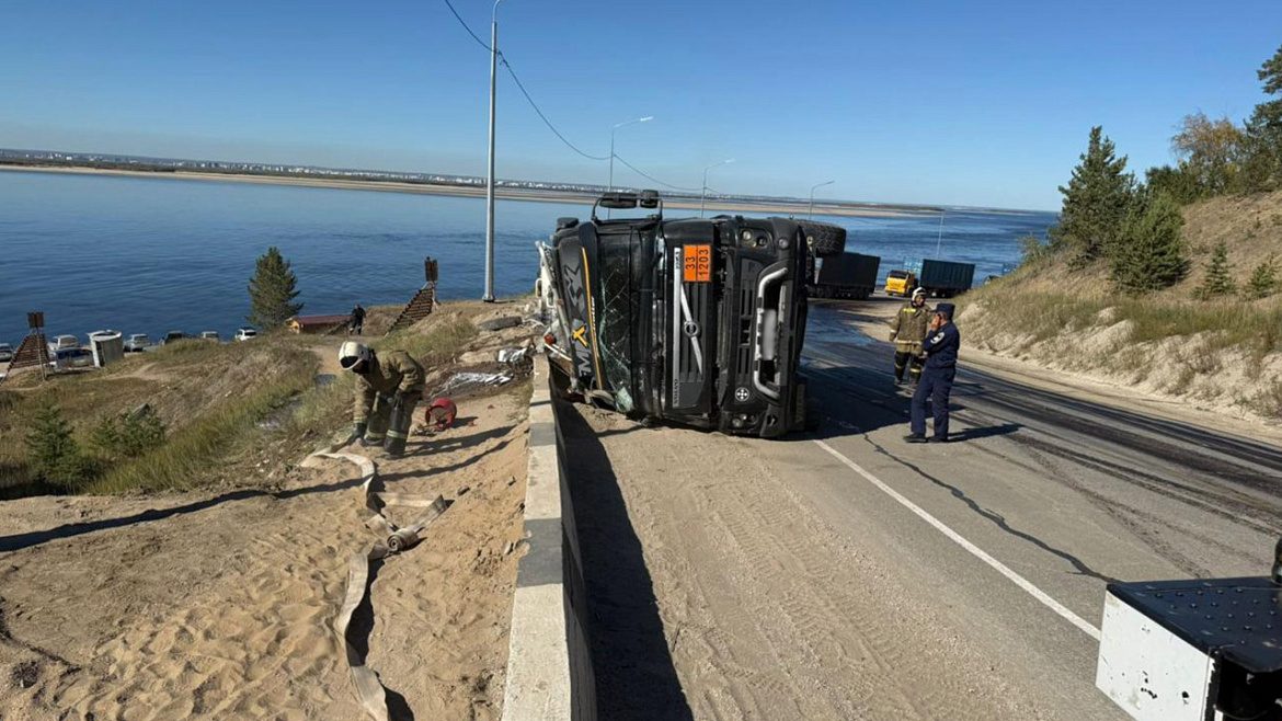 Сегодня, 5 сентября, около 14 часов 42 минут (по местному времени) в дежурную часть отдела МВД России по Мегино-Кангаласскому району Республики Саха (Якутия) поступило сообщение о том, что при спуске на паромную переправу в посёлке Нижний Бестях опрокинулся бензовоз.