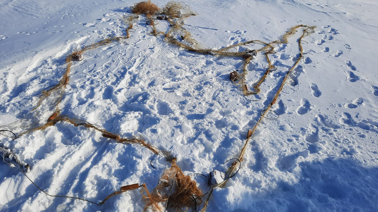 Во время осмотра места происшествия правоохранители обнаружили и изъяли установленные подо льдом рыболовные сети.
