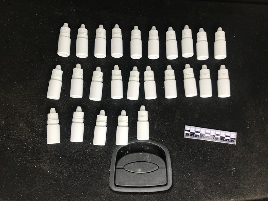 Во время личного досмотра у 40-летнего пассажира иномарки в рюкзаке было обнаружено и изъято порядка 50 полимерных пакетов, в которых находились капсулы и флаконы с жидкостью. Исследуя транспортное средство, правоохранители обнаружили в кармане передней пассажирской двери, а также в бардачке аналогичные капсулы и флаконы. Кроме того, по месту жительства 31-летнего мужчины, который находился за рулём, оперативники изъяли порядка 6 тысяч капсул.