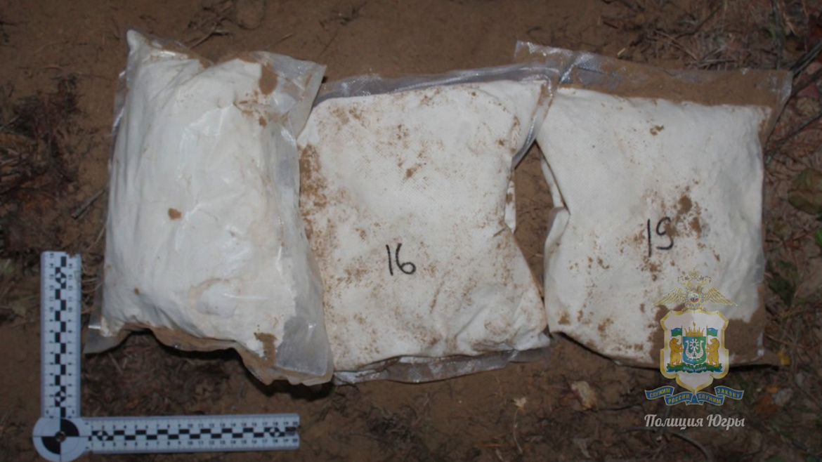В ходе дальнейших работы с задержанным мужчина показал полицейским место в лесополосе в городе Советском, где организовал тайник с запрещёнными веществами. Правоохранители из схрона изъяли три пакета с, как установила экспертиза, синтетическим наркотиком альфа-PVP общим весом порядка 5 кг.