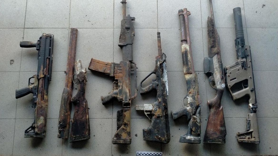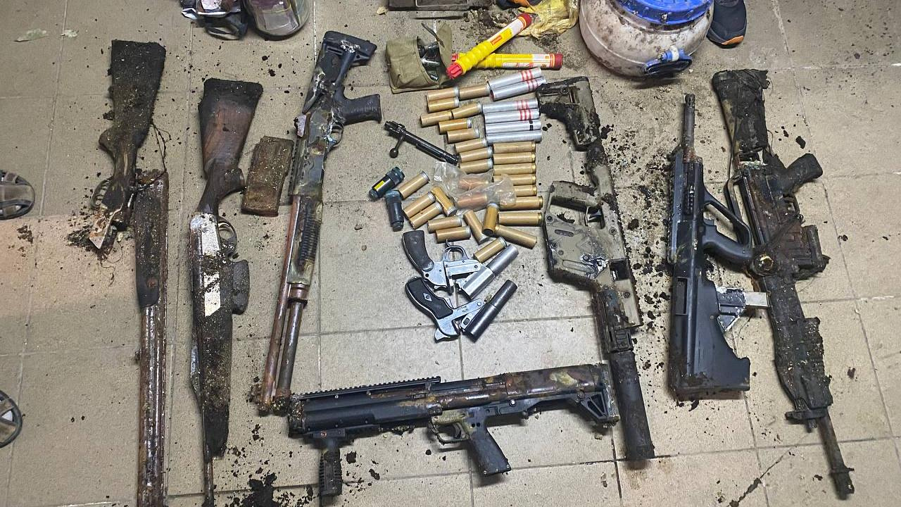 На цокольном этаже в котельной комнате полицейские обнаружили и изъяли более 50 единиц огнестрельного оружия и боеприпасов, среди которых ружья разного калибра, пистолет-пулемет, две гранаты и патроны. Также стражи правопорядка нашли в доме трехлитровую банку, в которой находились денежные средства в сумме 87 тысяч долларов США и около 15 тысяч евро.