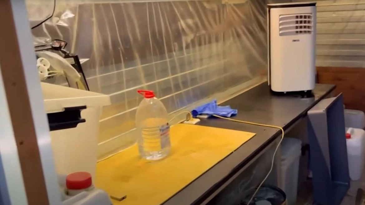 При осмотре дачного дома оперативники обнаружили пять пластиковых контейнеров объёмом двадцать литров каждый с синтетическим наркотическим средством – смесью, содержащей в своем составе альфа-PVP, общей массой более 154 килограммов. Также были изъяты несколько десятков канистр и бутылок с прекурсорами массой 440 килограммов.