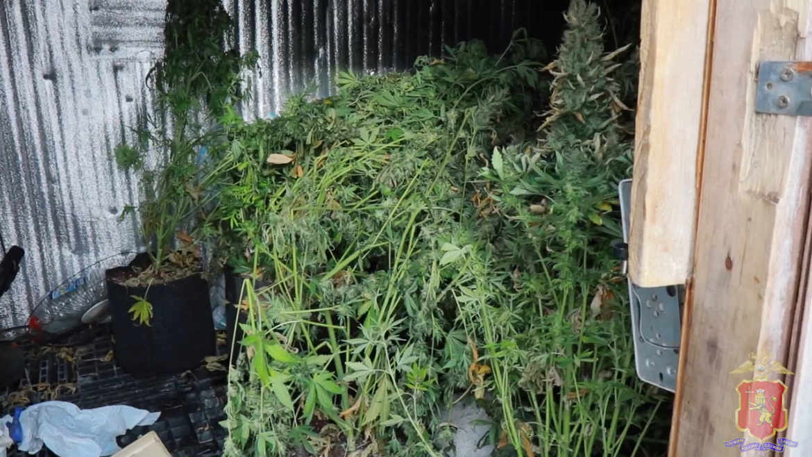 Во время обследования домовладения стражи правопорядка обнаружили в сарае и изъяли горшки с 90 кустами, внешне схожими с коноплёй. В помещении для роста растений были созданы необходимые условия: поддерживался температурный режим, нужное освещение, организован полив. Здесь же были найдены 11 пакетов, 3 мешка и 3 свёртка с веществом зелёного цвета.