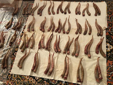 В ходе обысков по местам жительства двоих жителей Яшкульского района полицейские обнаружили и изъяли 39 пар рогов этих млекопитающих, а также шесть шкур и части тушек животных.