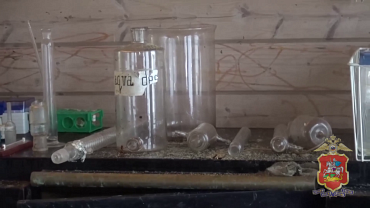 Из жилища злоумышленника изъяты кастрюля и тарелка с «синтетикой», канистры с химическими жидкостями, электронные весы, респиратор, а также оборудование, необходимое для синтеза наркотика.