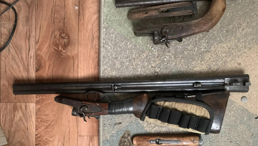 В ходе обысков стражи правопорядка обнаружили в хозяйственной постройке мужчины различное вооружение: ружьё Тульского оружейного завода калибра 16 мм, гладкоствольное ружьё ИЖ калибра 20 мм, обрез ружья ИЖ калибра 16 мм, курок, гранату РГД‑5, взрыватель, а также 72 патрона различных калибров. Согласно заключению экспертов, все изъятые предметы изготовлены промышленным способом и пригодны для стрельбы и производства взрыва.