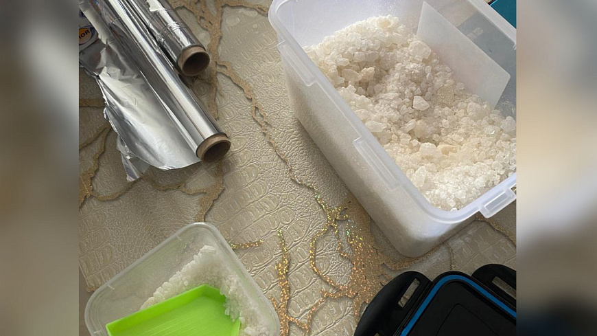 При личном досмотре правоохранители изъяли у подозреваемого сотовый телефон с информацией о его причастности к незаконному обороту запрещенных веществ и 1 сверток с порошком белого цвета. Экспертиза показала, что внутри находилось наркотическое средство синтетического происхождения.
