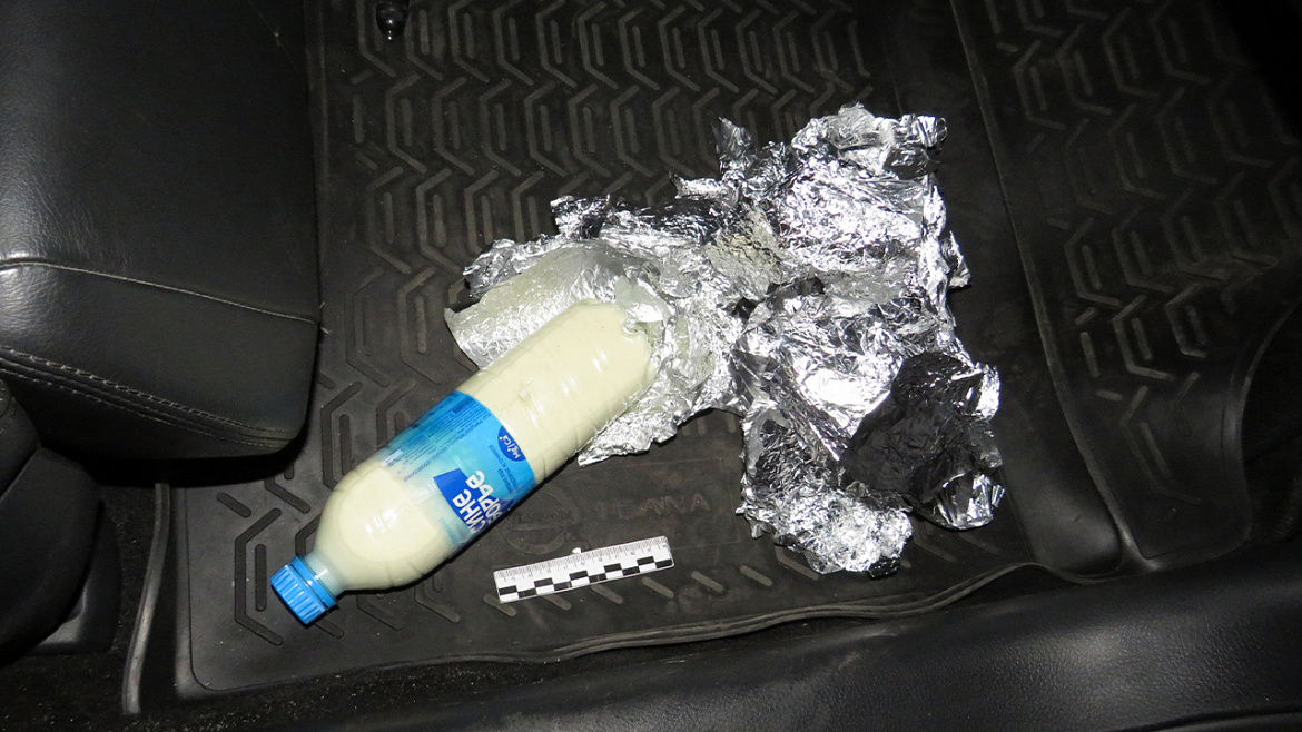 В Нижегородской области в дежурную часть ОМВД России по Починковскому району поступило сообщение от 25-летней местной жительницы о том, что вечером около магазина к ней подошёл знакомый и передал пластиковую бутылку, завёрнутую в фольгу. Мужчина пояснил, что в ней находится козье молоко, и попросил отвезти бутылку в г. Нижний Новгород. Его слова и внешний вид жидкости вызвали у заявительницы подозрения, поэтому она обратилась в полицию.