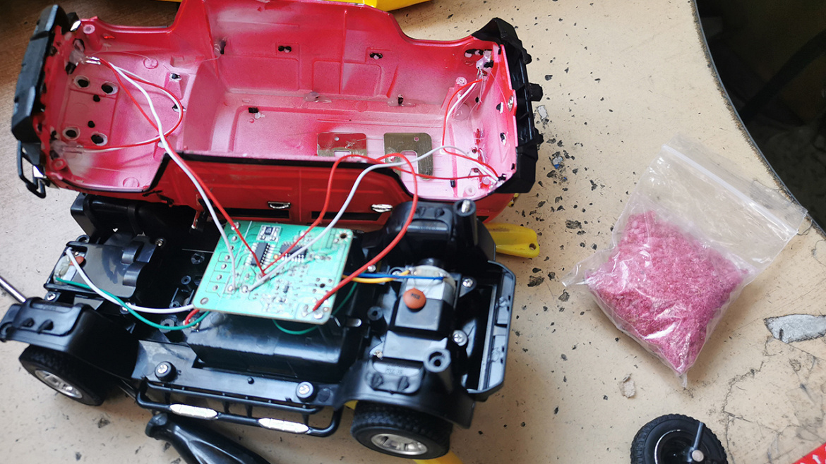 В ходе последующих оперативных мероприятий, стражам правопорядка стало известно, что злоумышленнику пришла посылка с крупной партией наркотика. Прибыв в логистическую компанию, оперативники вскрыли пришедшее на остров отправление. В коробке оказалась радиоуправляемая машинка, в корпусе которой был спрятан полиэтиленовый пакет с кристаллообразным веществом розового цвета и специфическим запахом. Проведенная экспертиза подтвердила, что в пакете находился концентрированный синтетический наркотик.
