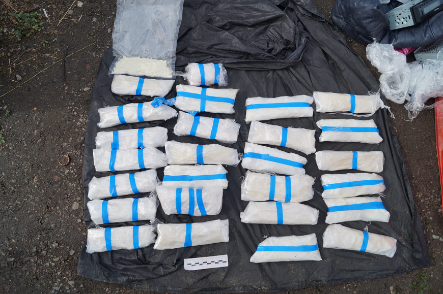 При досмотре автомобиля полицейскими обнаружено 37 свёртков с наркотиками общим весом около четырёх килограммов, в том числе гашиш, амфетамин, мефедрон, метамфетамин. По решению суда фигуранты были заключены под стражу.