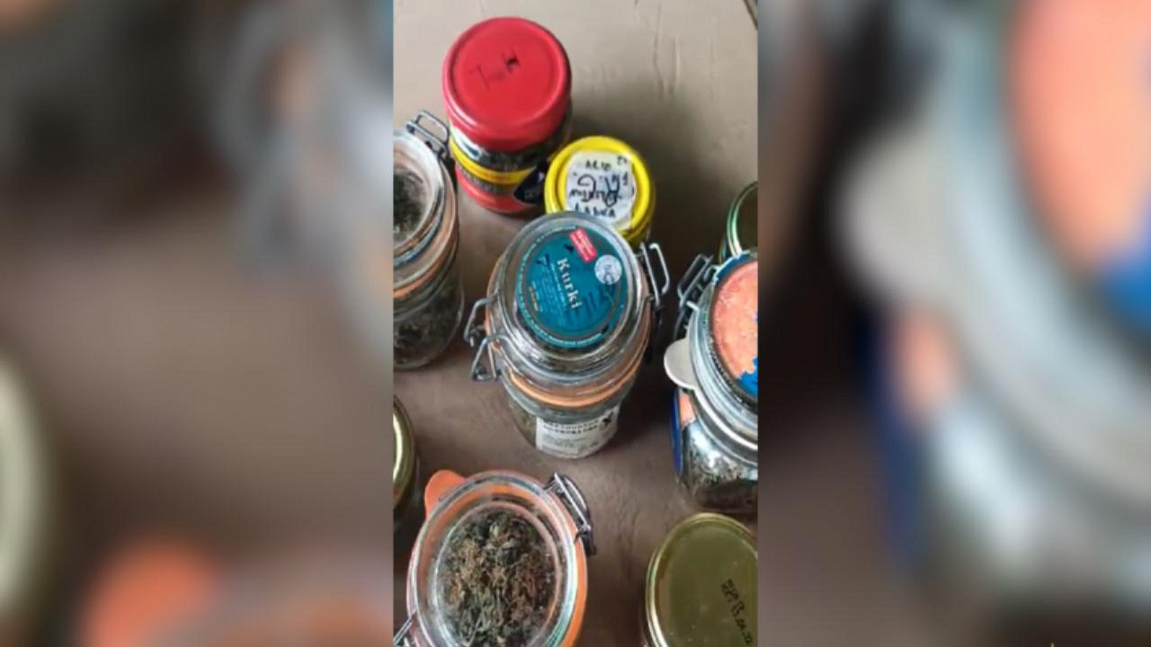 Сотрудники полиции также обнаружили в тайнике, оборудованном в хозяйственной постройке, 27 банок с 514 граммами марихуаны. На каждой имелась отметка о сорте конопли. Общий вес изъятой растительной массы в высушенном и сыром виде составил около 5 кг. Экспертиза подтвердила содержание в ней психотропных веществ.