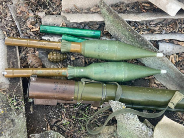 Из схрона стражи правопорядка изъяли ручной гранатомёт, пригодный для стрельбы, 2 выстрела к гранатомёту РПГ-7 и 2 гранаты. В настоящее время проводится проверка.