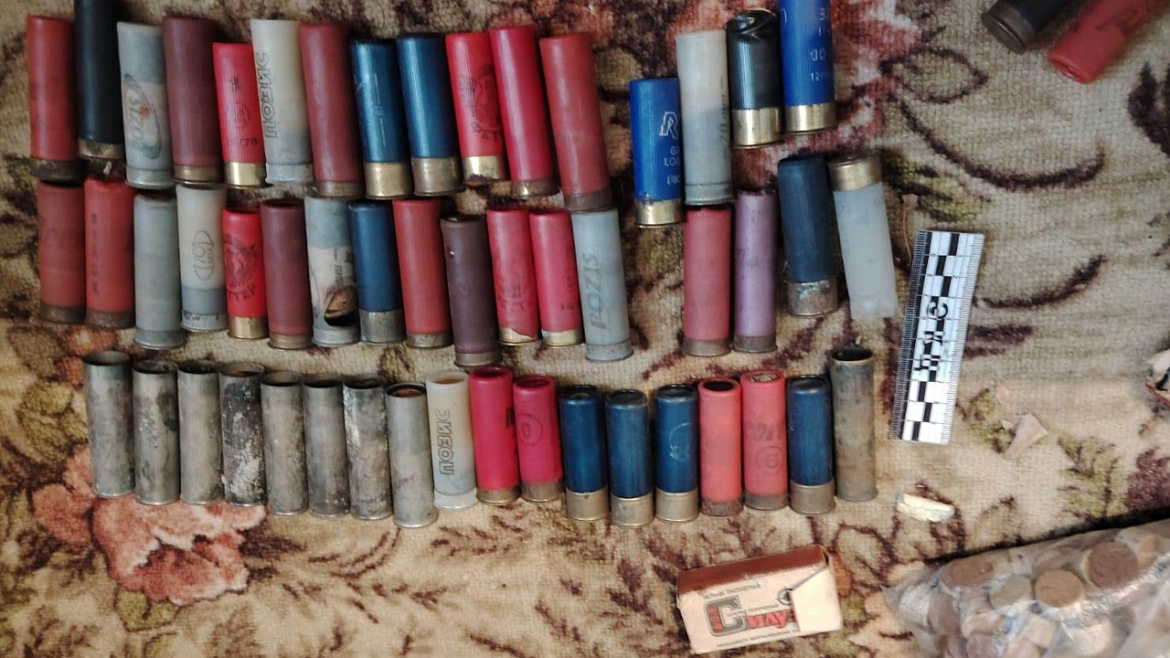 В летнем душе, расположенном на придомовой территории мужчины, оперативники обнаружили запалы гранат, порошок в двух металлических банках и картонной коробке общей массой 391 грамм, а также 175 патронов различного калибра.