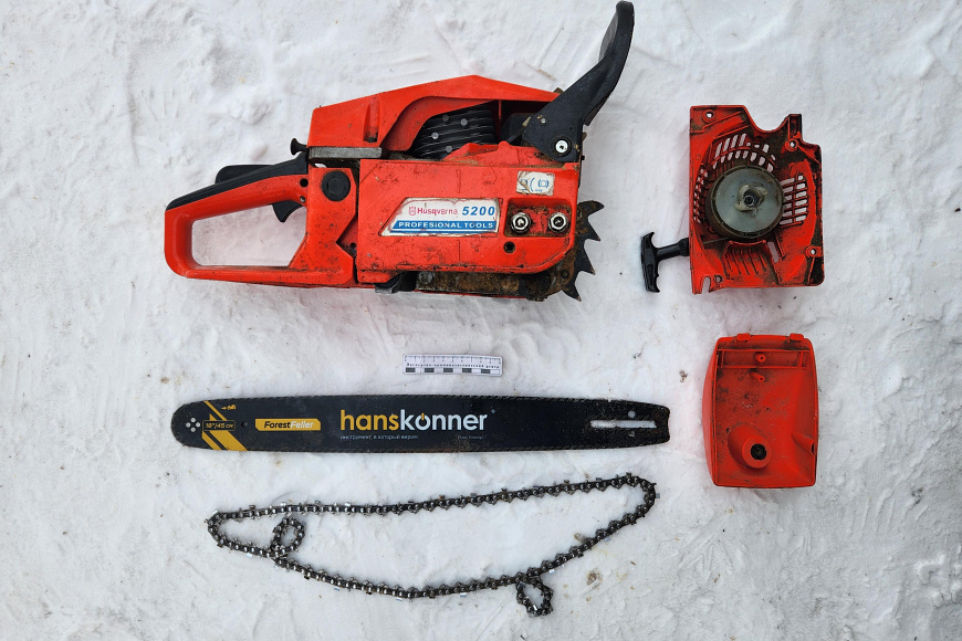 По месту жительства подозреваемого полицейские изъяли три бензопилы и распиленные на чурки брёвна.