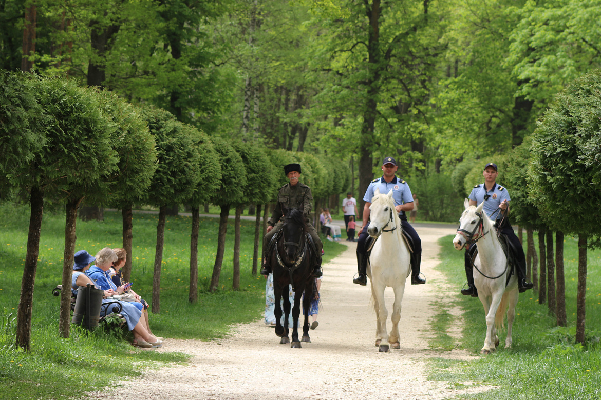 В штате ОМВД имеются три должности полицейских-кавалеристов, а на довольствии стоят служебные лошади Тироль, Тайфун и Зарбей. В конном дежурстве также на постоянной основе принимают участие казаки. Отряд конников немногочислен, но со своими задачами полностью справляется. Передвигается патруль по лесистой местности вдоль терренкуров, чтобы не мешать отдыхающим. Работают вне зависимости от сезона, разница лишь в том, что летом смена длится дольше, чем зимой, – до восьми вечера, потому как нести службу верхом в седле в тёмное время суток запрещает техника безопасности.