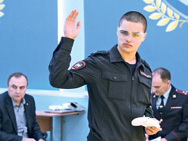 В элементах формы наших сотрудников органов внутренних дел также присутствуют цвета государственного флага. Таким образом каждый из них становится знаменосцем, облечённым особым доверием страны, уполномоченным народом на большое и важное дело - защиту спокойствия и безопасности граждан.