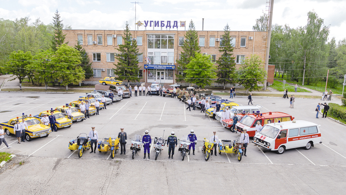 На площадке возле Госавтоинспекции УМВД России по Рязанской области выстроился специальный транспорт оперативных служб, обеспечивавший безопасность граждан и руководителей страны начиная с 1935 года. Кроме того, на экспозиции представили машины и мотоциклы милиции (НКВД), ГАИ СССР, КГБ, ФСО, пожарной охраны и медицинских служб. В общей сложности - около 30 единиц ретротехники.