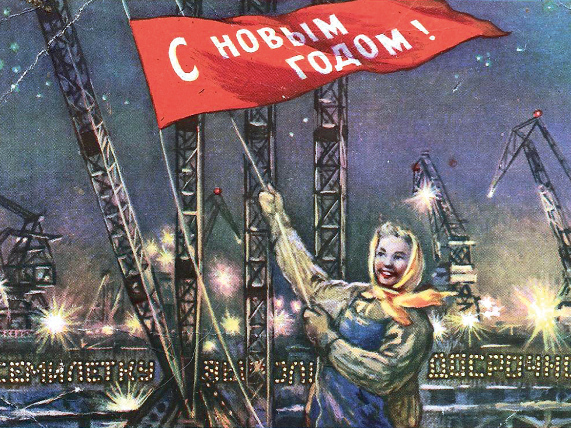 До конца 40-х тема празднования Нового года скромно представлена в отечественном плакате. И это понятно. Дело в том, что в 1927 году началась борьба с религиозными предрассудками и ёлку объявили «поповским обычаем». Вот такие строчки поэта Александра Введенского, напечатанные в журнале «Чиж» в 1931-м, можно встретить и на плакатах того времени: «Только тот, кто друг попов, ёлку праздновать готов».