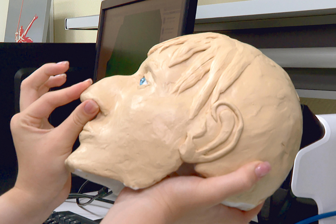 Вместе с преподавателями курсанты соединили воедино несколько методик. Сначала – сканирование черепа и создание модели, которую распечатывают на 3D-принтере. Виртуальный эскиз, удобный для измерений, становится основой скульптурного метода.