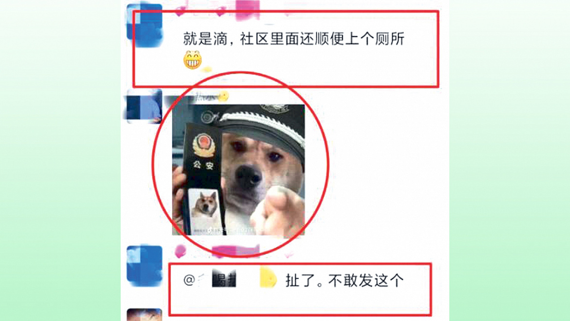 В ходе обсуждения очередного местного антикоронавирусного карантина один из участников беседы отправил на всеобщее обозрение мем. Это было изображение собаки в полицейской фуражке. Животное держит значок и указывает на камеру. Картинка широко использовалась в социальных сетях и ранее. Иногда в ней фигурировал кот или какой-нибудь персонаж из мультфильма.
