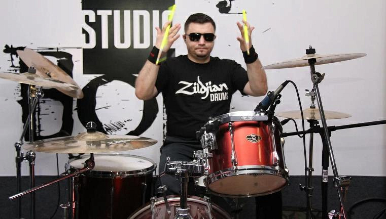 Тёмные очки, барабанные палочки, атмосферная футболка и расписные кеды… майора полиции Александра Княжева.