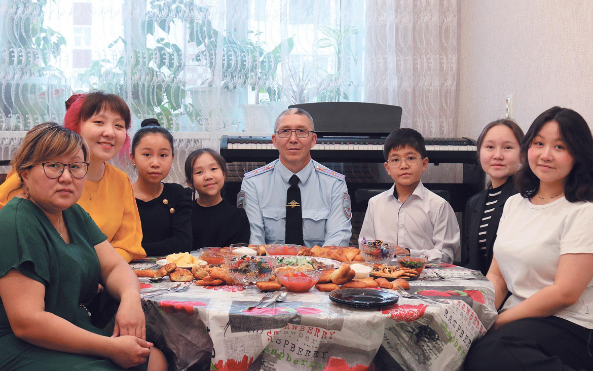 Для Базарбая Кужатова служба в органах внутренних дел - не просто работа. Благодаря ей он встретил супругу Сауле. Пара 20 лет вместе, воспитывает шестерых детей.