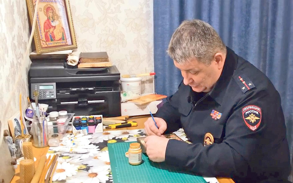 Образы никогда не продаёт, хотя такие предложения были, дарит тем, кого хочет поддержать, любит и уважает. Вместе с картинами освоил изготовление свечей из натуральной вощины. Оба увлечения помогают капитану полиции сохранять позитивный настрой в любых ситуациях и делиться с окружающими теплом.