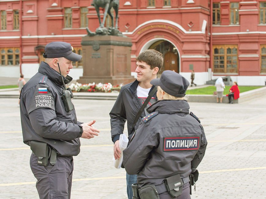 Седьмой год в Москве несёт службу уникальное подразделение органов внутренних дел - туристическая полиция. Сотрудники патрулируют самые популярные маршруты гостей столицы, обеспечивают безопасность, взаимодействуют с иностранными гостями во время их пребывания в городе, а также часто выступают в роли гидов и переводчиков.