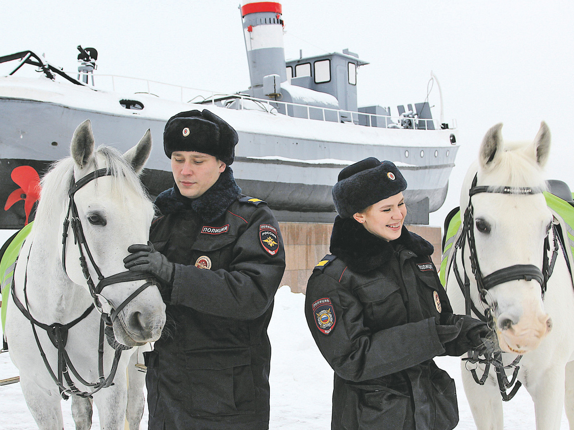 - Всадники в погонах усиливают наряды полиции, которые обеспечивают общественный порядок. Работают в сложных местах: коридорах безопасности или на территории, где возможно осложнение оперативной обстановки. Умело управляя лошадью, два кавалериста могут заменить десять пеших сотрудников, - рассказывает командир 1-го отделения старший прапорщик полиции Михаил Пестряков.