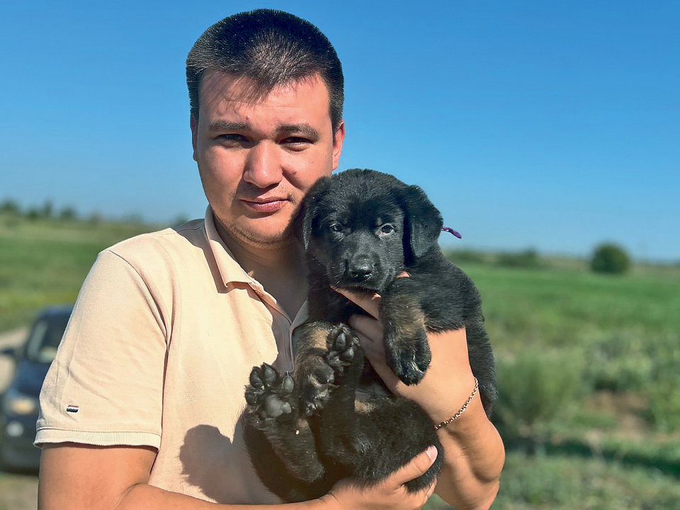 На днях Ринат принял на воспитание нового питомца. Щенок родился в конце мая.