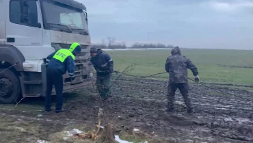 В Запорожье полиция вызволила из полевой распутицы большегруз сбившегося с маршрута дальнобойщика