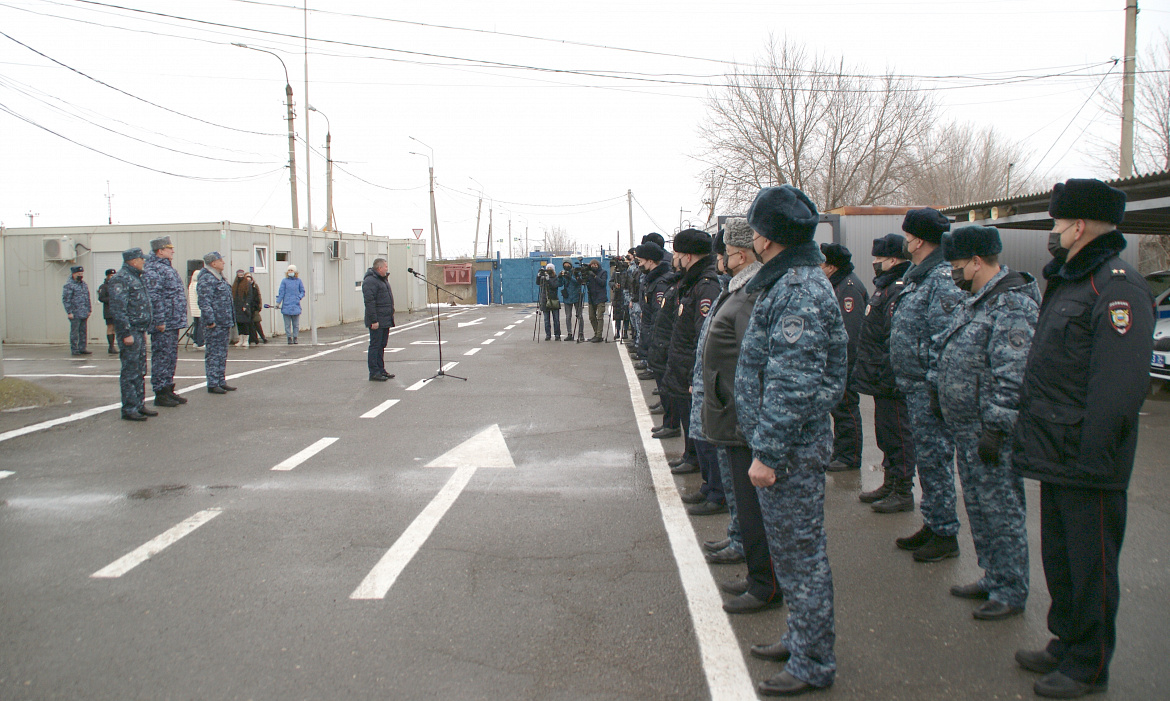 Во время посещения объекта Александр Кравченко проверил условия несения службы, пообщался с сотрудниками сводного отряда, поздравил их с праздниками и поблагодарил за работу по обеспечению правопорядка и безопасности.