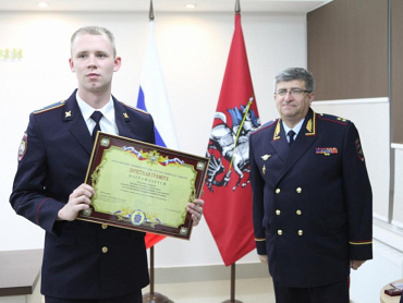 В торжественной обстановке Игорь Калиниченко вручил рядовому полиции Евгению Волкову Почетную грамоту МВД России за добросовестное выполнение служебных обязанностей, проявленную решительность и самоотверженность.