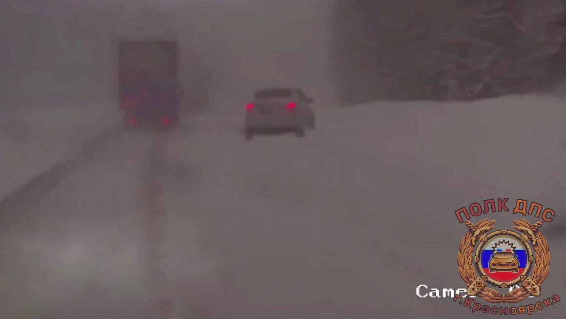 Красноярские полицейские пришли на помощь автоледи, чью машину в сильную метель выбросило с трассы